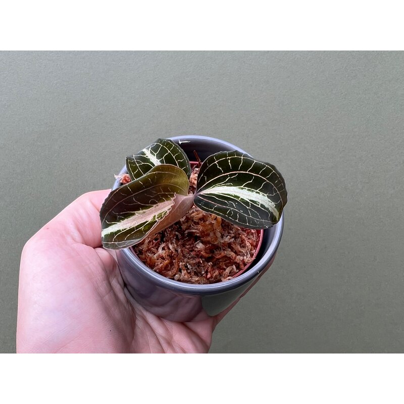 Juwelorchidee im 5,5cm Topf, eine sehr schöne Art mit ausgefallener Blattzeichnung. Die Pflanze wird ohne Übertopf geliefert, dieser ist aber im Shop erhältlich. Wir empfehlen eine Kultur in Sphagnummoos.