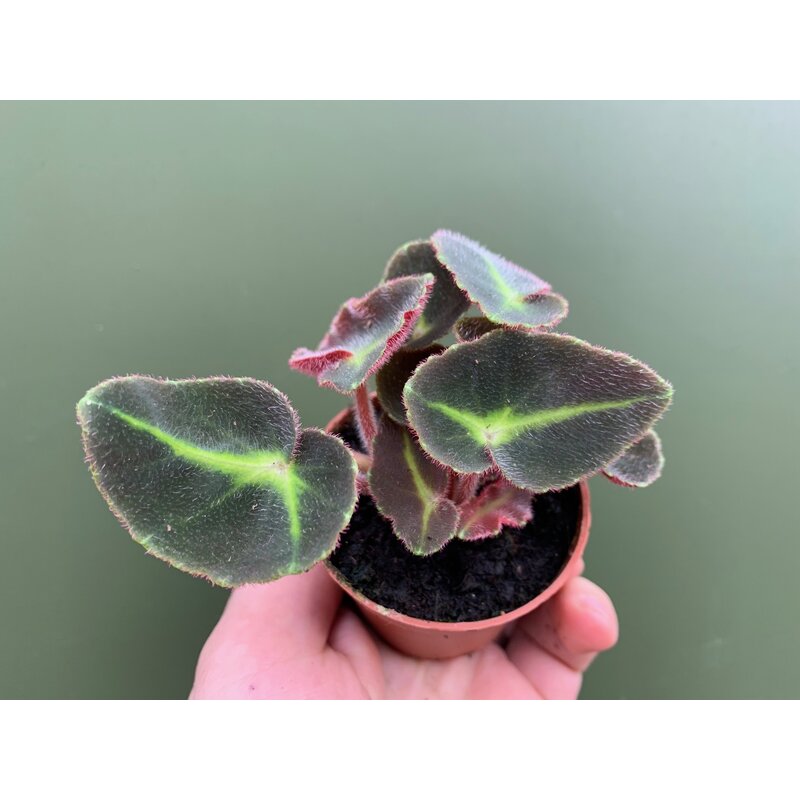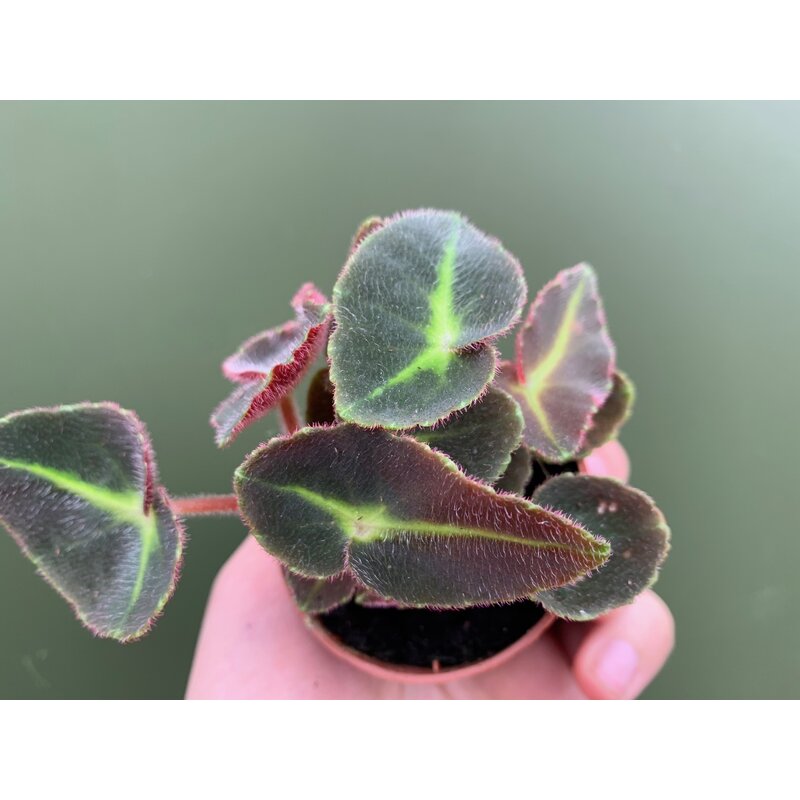 Die Blätter der Begonia listada sprechen gleich mehrere Sinne an, weil sie zum einen durch ihre markanten hellgrünen Mittelstreifen sowie ihre mahagoniefarbene Unterseite auffallen und zum anderen eine ganz samtige Textur haben. Pflegeleicht und von kompaktem Wuchs eignet sie sich sowohl für die Haltung im Terrarium als auch als Zimmerpflanze. Die erwachsene Pflanze kann zudem viele kleine zartrosafarbene Blüten entwickeln.