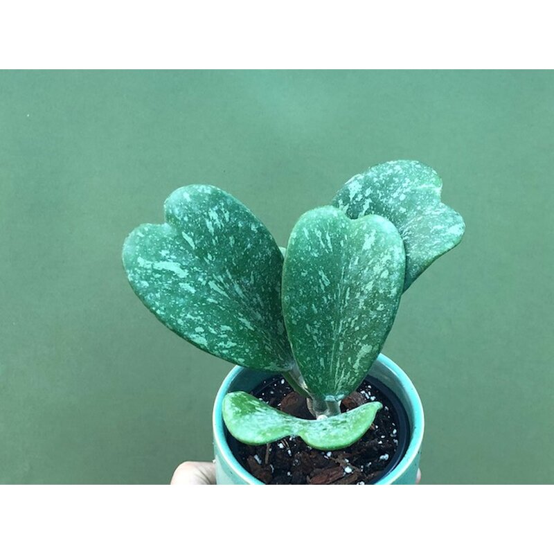 Schöne Hoya, Herzförmig, selten zu finden. Sehr schöne, panaschierte Blattzeichnung . Sie verträgt es trockener und ein heller Standort ist ideal.