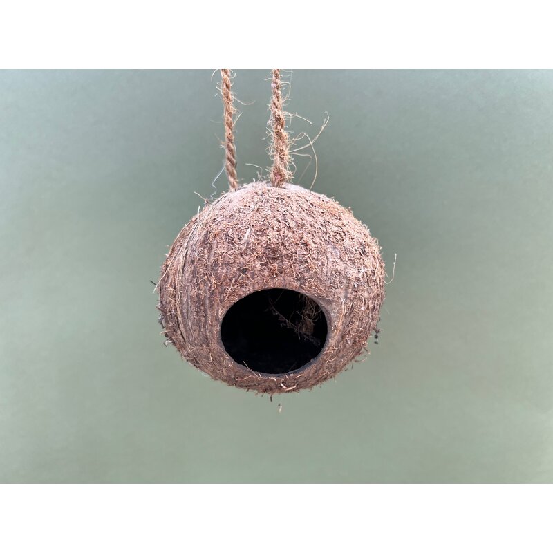 Kokosnuss mit Loch zum aufhängen als Dekoration für ihr Terrarium oder für eine Vogelvoliere.