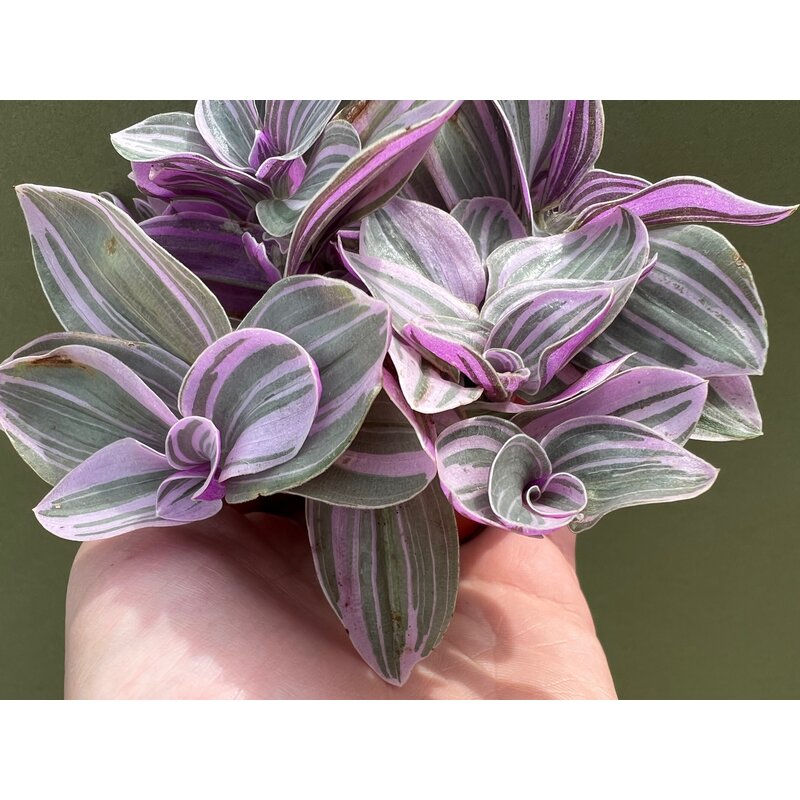 Einen sensationellen Eindruck hinterlässt diese Tradescantia vor allem dank ihrer außergewöhnlichen Optik mit Blättern, die mit weißen, leuchtend pink und purpurfarbenen Streifen überzogen sind. Aufgrund ihres kriechenden Wachstums lässt sie sich auch gut in einer Hängeampel kultivieren.